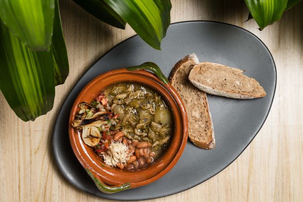 Migas con huevo acompañadas de frijoles.