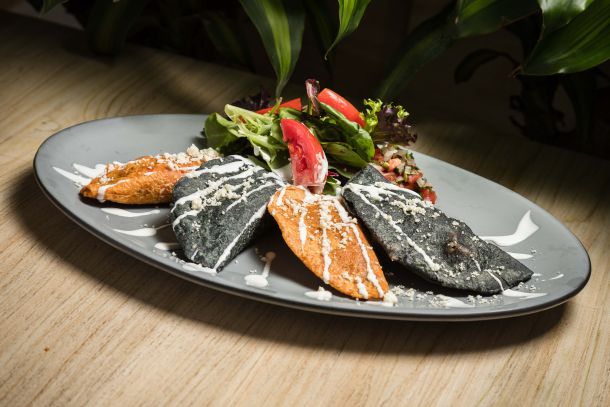 Deliciosas quesadillas fritas rellenas de nuestra emblemática birria, acompañadas de consomé y cebolla en curtida.